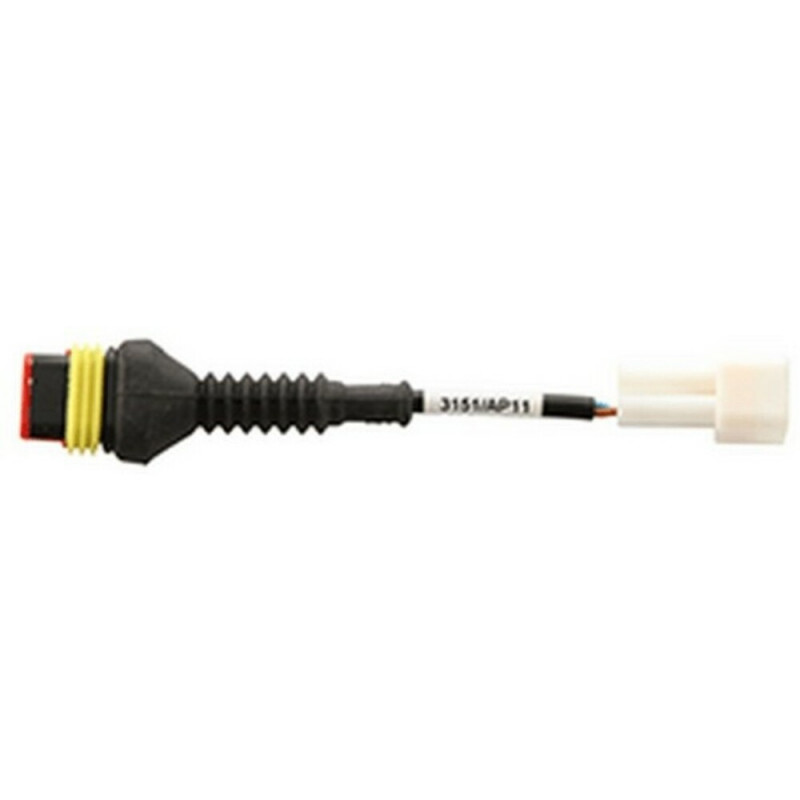 KAWASAKI-Anschlusskabel für die serielle Diagnose des Benzineinspritzsystems der meisten Fahrzeuge vor 2010. Darüber hinaus kann das Kabel in einigen BAJAJ-Fahrzeugen verwendet werden, die in Zusammenarbeit mit KAWASAKI entwickelt wurden. HINWEIS: Das Anschlusskabel muss mit dem Hauptkabel 3151/AP01 verbunden werden, außer für die Diagnose von OFF ROAD-Modellen ohne Batterie (vor 2010). In diesem Fall ist die Kombination wie folgt: Kabel 3151/AP01 durch Kabel 3151/AP26 geführt; Kabel 3151/AP27 wird mit Kabel 3151/AP26 verbunden, um die Fahrzeuge mit Strom zu versorgen. Die Klemme 3151/AP11 wird mit der Buchse des Kabels 3151/AP01 verbunden. ACHTUNG: Die mit der Klemme 3151/AP11 kompatible Buchse könnte auch in einigen Fahrzeugen vorhanden sein, die nach 2010 hergestellt wurden. *Zur Verwendung in Kombination mit Kabel 3151/AP01