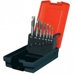 HSS M2 machine tap set - 7 pieces - DIN 371B and DIN 376B from M3 to M10. Presented in a high quality PVC case.