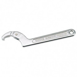 Hook wrench for tightening and loosening the steering nut and preload spring of the rear shock absorber. Capacity: 32 to 76 mm Length: 205 mm Forged from chrome-vanadium steel, hardened and tempered. Chrome finish