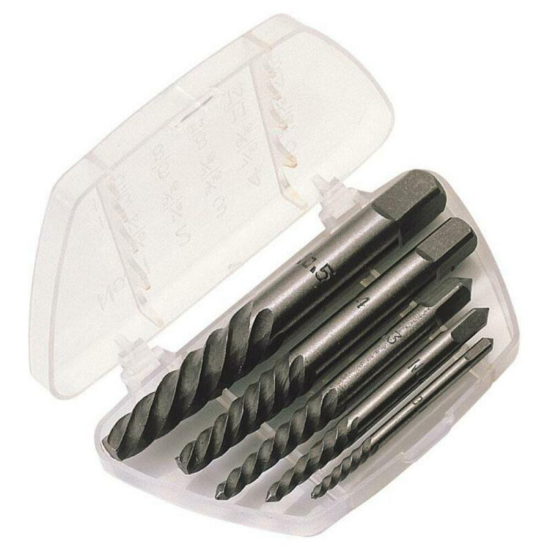 High-quality carbon steel extractor kit for split screws (5 units) Capacity: 3 to 18 mm 3-6 mm, 6-8 mm, 8-11 mm, 11-14 mm, 14-18 mm