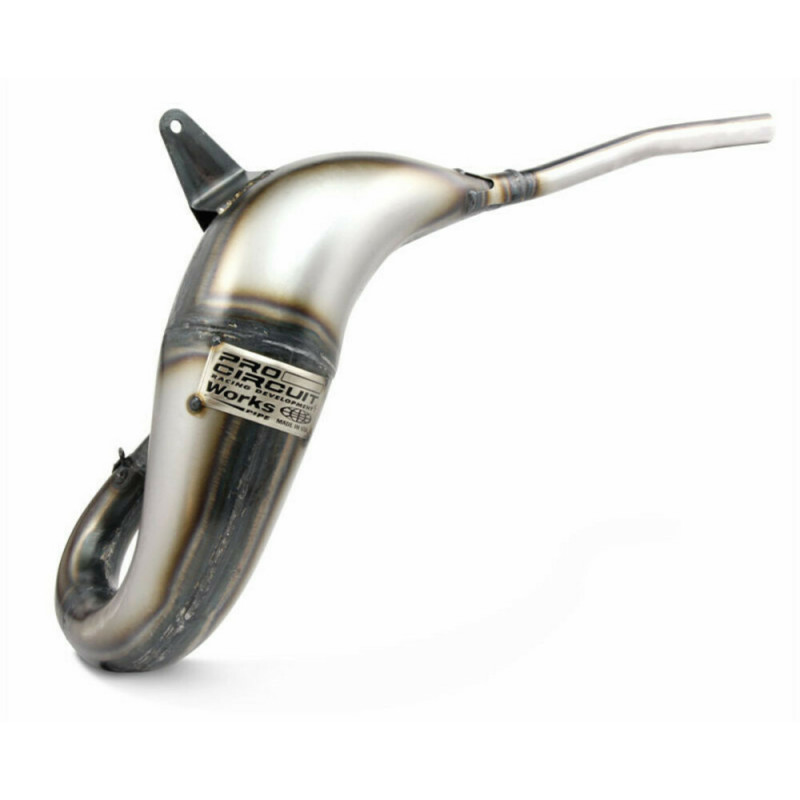 The original Pro Circuit Works Pipe offers unparalleled performance and power for every two-stroke application. Increased horsepower and torque gains will quickly be noticed across the entire rpm range. The unplated, oiled metal finish requires some maintenance, but really gives your bike that Works Look.