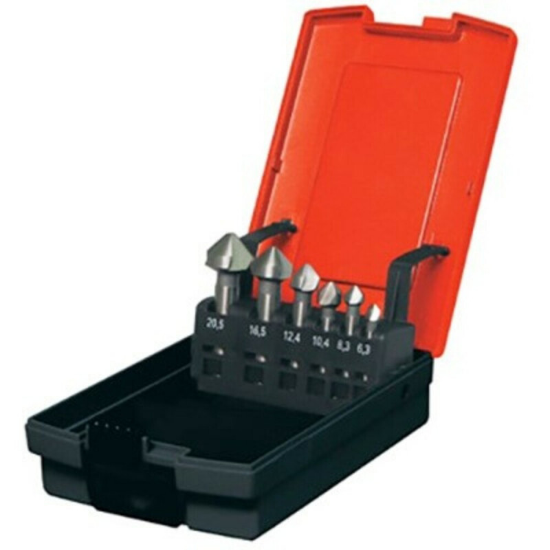 Avellanadores HSS M2 para chaflanar de 6 piezas. DIN 335-C. Con mango cilíndrico. Presentado en un estuche PVC de alta calidad.