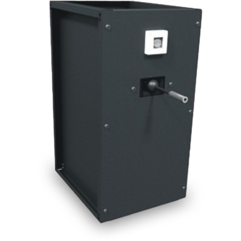 Se trata de un módulo tipo armario cerrado por delante con una chapa pintada en polvo epóxido, que lleva por dentro un enrollador con manguera de 10 metros de Ø10mm. Se debe conectar a un compresor o a la instalación de aire comprimido del taller por medio de un conector rápido (hembra 1/4“).
