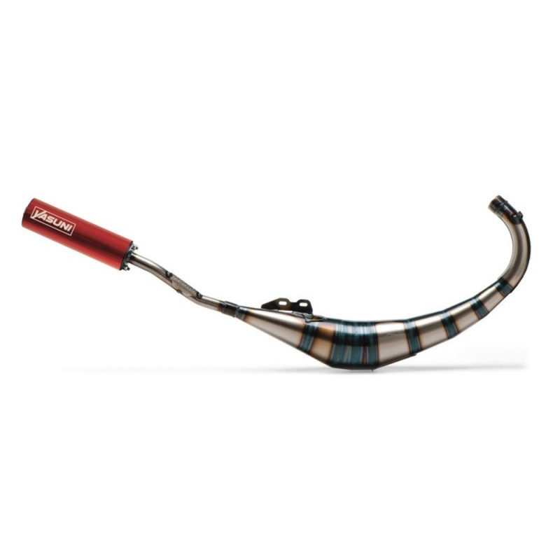 Se trata de un escape que funciona con cilindros de 50cc, pero que está preparado para ofrecer las máximas prestaciones con cilindros de 70cc. Gracias a su diseño el escape proporciona su máxima potencia en un amplio régimen de RPM, mejorando de este modo su aceleración y al mismo tiempo incrementando la velocidad punta de la moto.