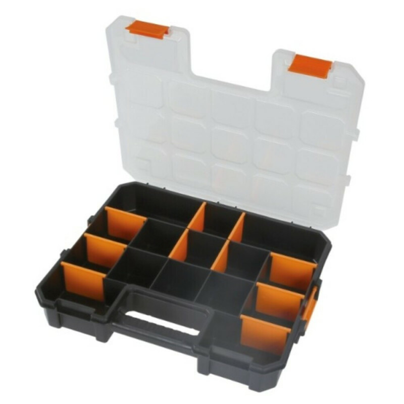 Maletín organizador portátil diseñado para almacenar y transportar herramientas y piezas pequeñas de manera eficiente. Fabricado con materiales de alta calidad, ofrece durabilidad y resistencia en entornos de trabajo exigentes.