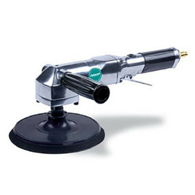 Pulidora 7”. Pulidora de gran ángulo con cabeza especialmente plana. Empuñadura adicional para personas zurdas y diestras. Tamaño de plato con disco de velcro Ø 7” (180 mm). Tamaño del husillo 5/8” – 11 UNC. Superficie: ¼”. Ø de la manguera 3/8”. Se suministra con racord de ¼”.