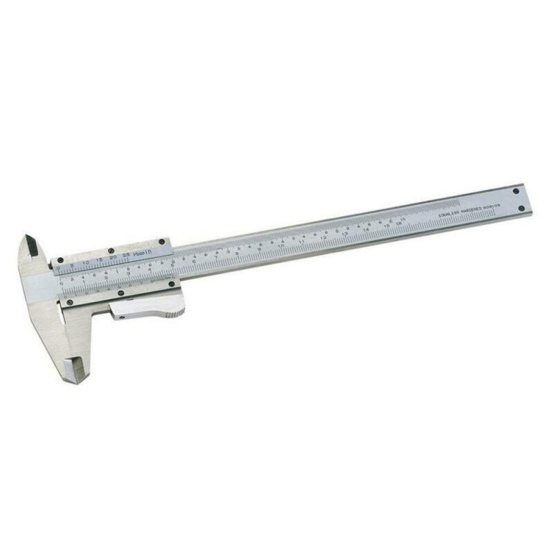 Pie de rey 150 mm. Cuatro clases de medición: interior, exterior, profundidad y gradualPrecisión: 0'02 mm (1/1000)