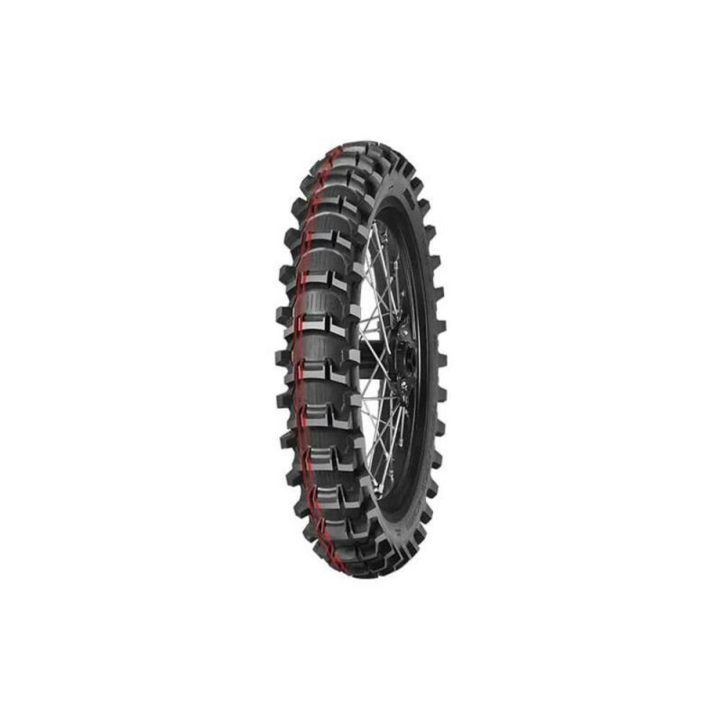 SAND TERRAIN - Identified by the characteristic double red stripe: Motocross competition tire made from the hardest tread compound for soft and sandy terrain.