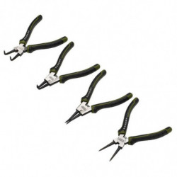Este juego de alicates para circlips está fabricado en acero al cromo vanadio, lo que garantiza su durabilidad y fiabilidad. Los mangos con resorte abren automáticamente los alicates después de cada compresión, mientras que las mordazas mecanizadas con precisión mejoran el agarre. Las cabezas están electroforéticamente chapadas para una mayor resistencia a la corrosión. Además, los mangos de agarre blando proporcionan una mayor comodidad y un mejor agarre.