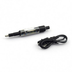 Testador de bobina. Meça a distância e analise a cor da faísca para detectar se a bobina está em boas condições. A distância ideal da faísca é geralmente em torno de 2 cm. Se a faísca for azul púrpura, estiver perfeitamente alinhada e atingir