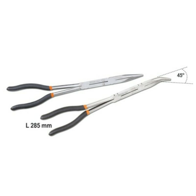 Conjunto beta de 2 alicates serrilhados duplos, muito longos e semi-redondos, com bicos para peças de reposição de ciclomotores
